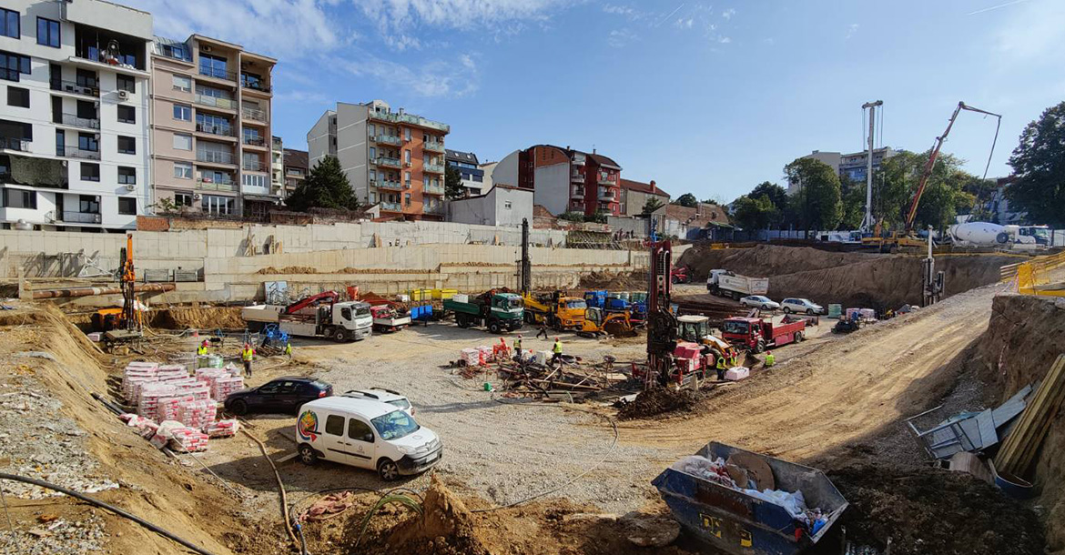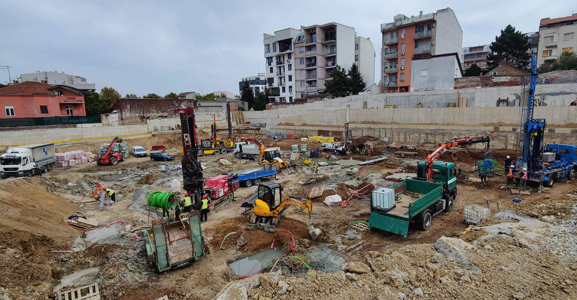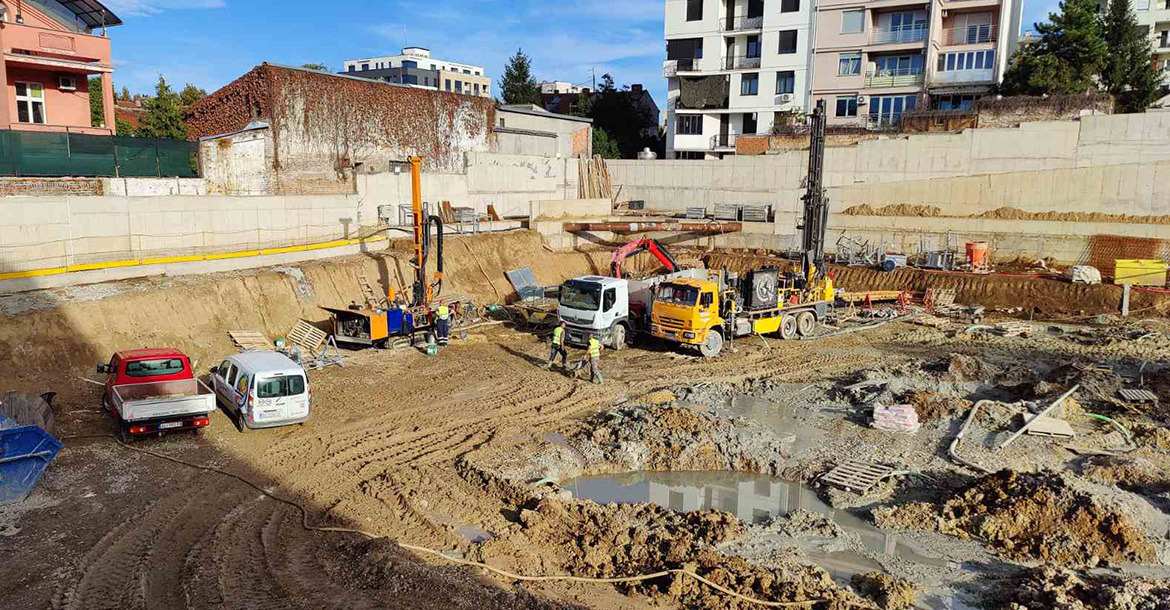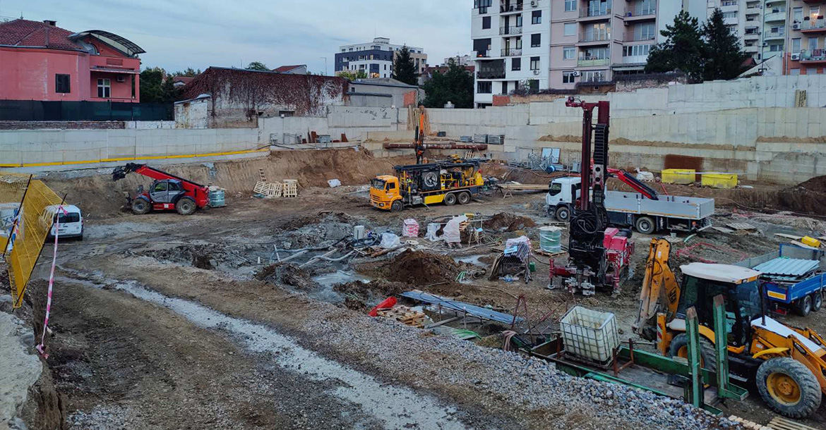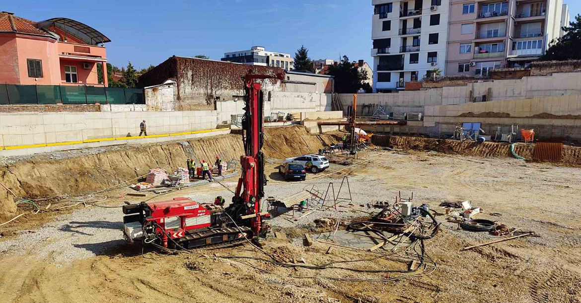 Tokom 2024. geotermalne sonde povezane su na razdelnike i sabirnike, koji su dalje povezani na unutrašnje instalacje.
